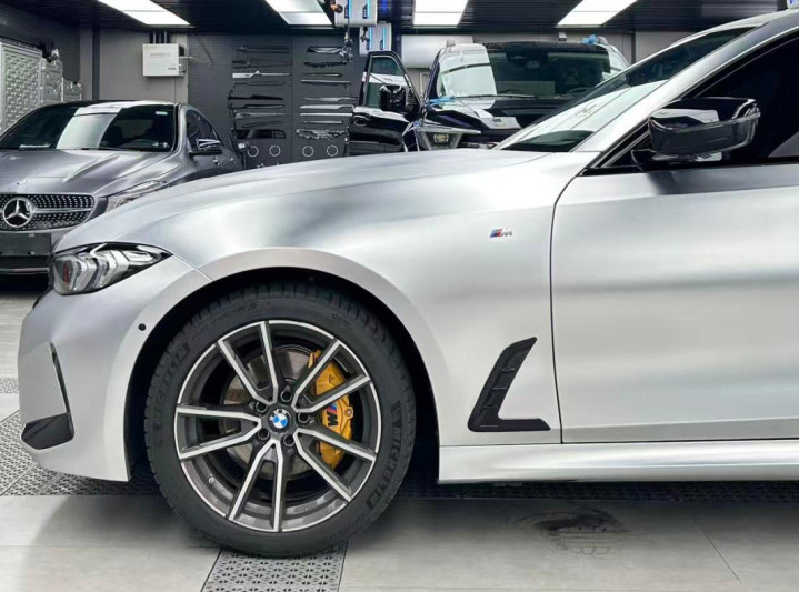改色膜介绍:依托纳米技术优势打造三层结构(抗刮层+修复层+增亮层),抗黄变等级达8级。采用专车专用数据剪裁,匹配精度小于0.5mm,配合ISO 5级无尘施工标准,可实现复杂曲面的完美贴合,适合高端车型的精细化改色需求。